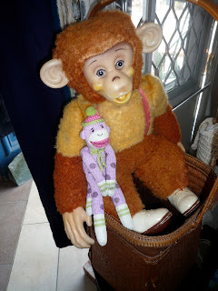 Jane bought a small pair of gumboots for baby Isaac. Socky tried some on.